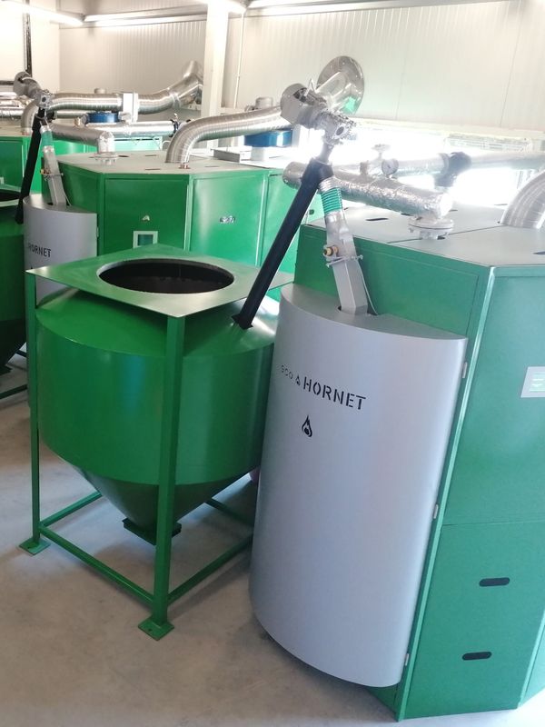 The ecoHORNET burner is mobile, with self-cleaning and combustion acceleration for the case of using lower energy pellets.